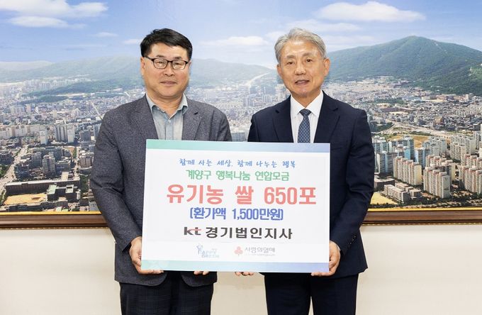 (포탈뉴스통신) 인천광역시 계양구는 지난 22일 KT부천지사에서 지역 내 어려운 이웃을 돕기 위해 유기농 쌀 650포(4kg)를 기탁했다고 밝혔다.