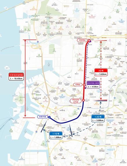 (포탈뉴스통신) 인천광역시는 인천대로 일반화 도로개량공사를 1-1단계인 인천기점~독배로, 1-2단계 독배로~주안산단고가교, 그리고 2단계인 주안산단고가교~서인천IC로 세분화했으며, 오는 10월 2단계 구간을 착공해 전체 사업을 본격적으로 추진한다고 밝혔다.