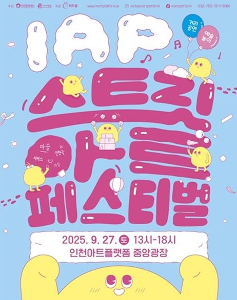 (포탈뉴스통신) (재)인천문화재단-인천아트플랫폼은 9월 27일 13:00~18:00 인천아트플랫폼 중앙광장에서 거리공연과 예술놀이 프로그램으로 구성된 거리예술 축제 'IAP 스트릿 아트 페스티벌'을 개최한다.