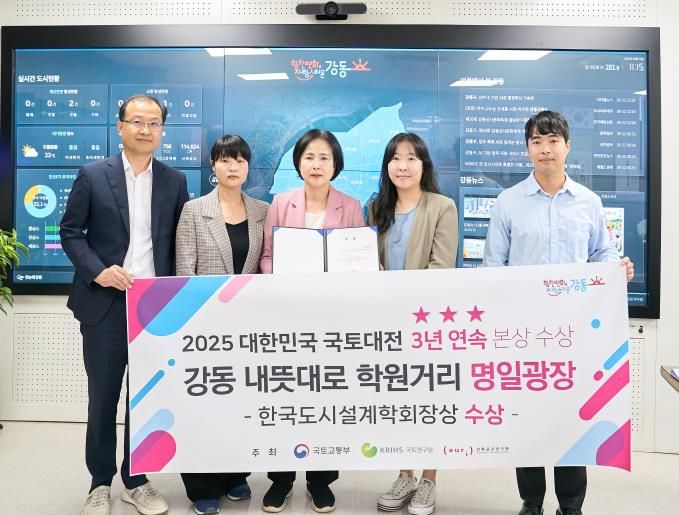 (포탈뉴스통신) 강동구는 지난 18일 ‘2025 대한민국 국토대전’에서 ‘강동 내뜻대로 학원가 명일광장 조성사업’으로 한국도시설계학회장상을 수상했다고 24일 밝혔다.