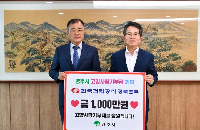 유정근 시장 권한대행은 “영주시 고향사랑기부제에 적극 참여해주신 한국전력공사 경북본부 임직원분들께 감사드린다”며, “기업의 따뜻한 마음이 잘 전달되어 영주시의 경제 발전에 큰 도움이 될 것”이라고 전했다.