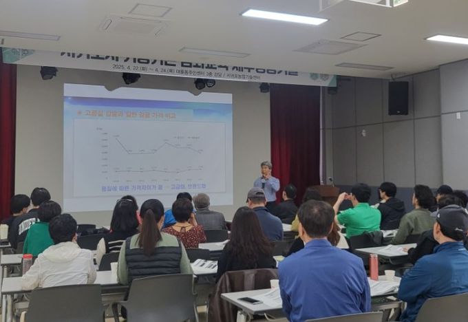 서귀포시 귀농귀촌교육은 기본교육을 거쳐 심화교육, 창업연계 3단계로 진행되는데 이번 교육은 2025년 8월에 이뤄진 하반기 기본교육 이수자(61명)를 대상으로 진행되는 심화교육 과정으로서, 제주의 기후와 토양, 재배작물, 친환경 농산물, 농업경영체 등 영농 활동에 도움이 되는 다양한 정보를 제공하고 감귤재배 현장 견학도 이뤄진다.