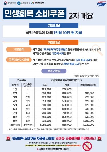이번 소비쿠폰 지급은 1차 지급과 달리 국민 90%에게 1인당 10만원을 지급하며, 이번주 금요일인 26일까지는 요일제로 운영하고 있다.