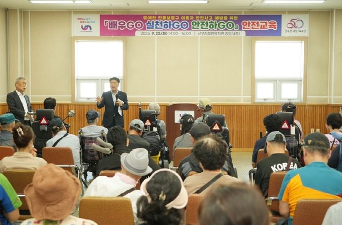 (포탈뉴스통신) 부산 남구는 23일 남구장애인복지관에서 전동 보장구 이용자와 보호자 50여명을 대상으로 안전교육『배우GO 실천하GO 안전하GO』를 개최했다.