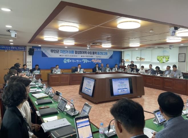 (포탈뉴스통신) 전남 무안군은 지난 23일 부서장 등 40여명이 참여한 가운데 기후변화에 대응하는 친환경 교통수단으로 자전거 이용을 활성화하기 위한 ‘무안군 자전거 이용 활성화계획 수립 용역’ 중간보고회를 개최했다.