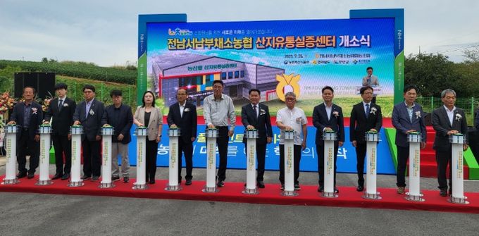 전남도는 24일 무안 현경면 전남서남부채소농협에서 농산물 풀필먼트 실증센터 개소식을 개최하고, 첨단 기술을 접목한 농산물 물류·유통 자동화 기술을 선보였다.