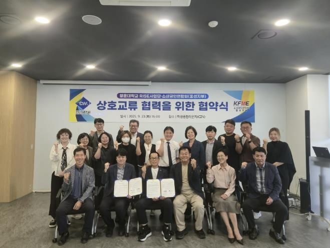 (포탈뉴스통신) 홍성군은 지난 23일 청운대학교 학생종합라운지에서 소상공인연합회 홍성지부와 청운대학교 RISE사업단이 지역 소상공인 및 청년 창업 생태계 조성을 위한 상호협력 업무협약(MOU)을 체결했다고 밝혔다.