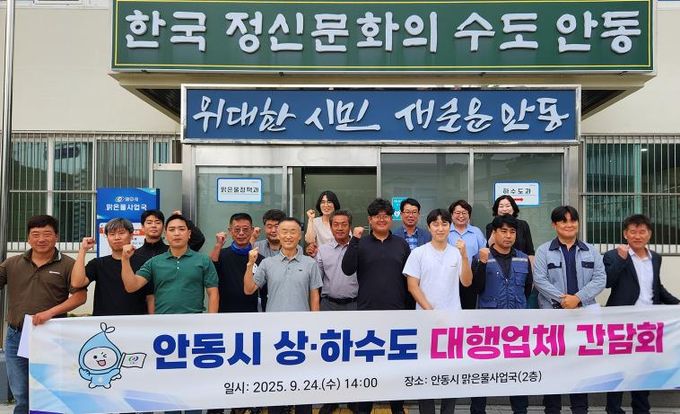 (포탈뉴스통신) 안동시는 9월 24일 맑은물사업국 2층 국장실에서 상․하수도 대행업체 10개 사 대표들과 맑은물사업국 직원 등 20여 명이 참석한 가운데, 사업 품질향상 및 상호협력 강화를 위한 ‘상․하수도대행업체 간담회’를 개최했다.