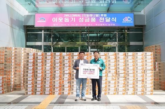 (포탈뉴스통신) 지난 19일 지역 대표 카페인 지밀레니얼은 추석을 맞아 부산 남구(구청장 오은택)에 관내 저소득층을 위한 라면 1,000박스를 전달했다.