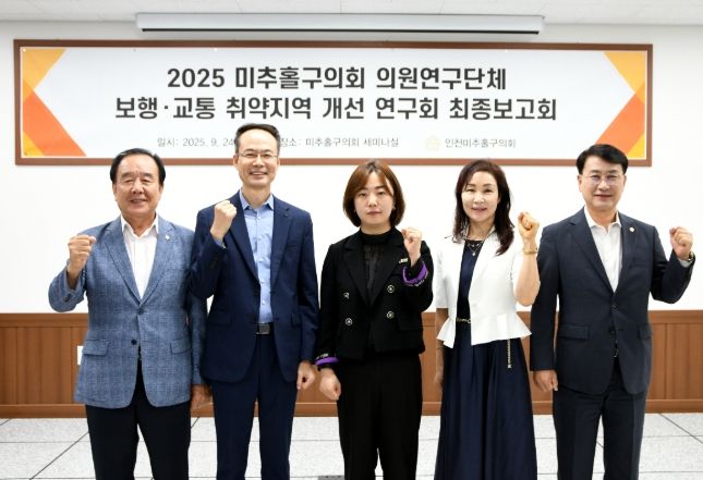 (포탈뉴스통신) 인천광역시 미추홀구의회 의원연구단체 '보행·교통 취약지역 개선 연구회'(대표의원 박수연, 연구의원 장규철·배상록·김태계)가 2025년 9월 24일 미추홀구의회 세미나실에서 연구용역 최종보고회를 개최하고 성공적으로 마무리했다.
