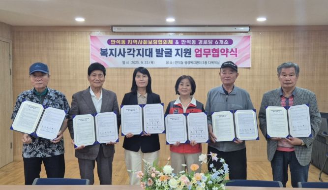 (포탈뉴스통신) 인천 동구 만석동 지역사회보장협의체(민간위원장 김은희)는 지난 23일 관내 경로당(만석동 제1경로당 등 6개소)과 복지사각지대 위기가구 발굴·지원 위한 업무협약을 체결했다고 밝혔다.