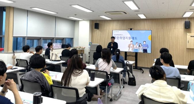 국민취업지원제도는 취업을 원하는 국민에게 맞춤형 취업 지원과 생계 지원을 함께 제공해 취업에 성공할 수 있도록 돕는 고용노동부의 제도로, 설명회는 ▲국민취업지원제도 소개 ▲신청절차 및 지원혜택 안내 ▲취업지원프로그램-직업훈련 연계 방안 안내 순으로 진행됐다.