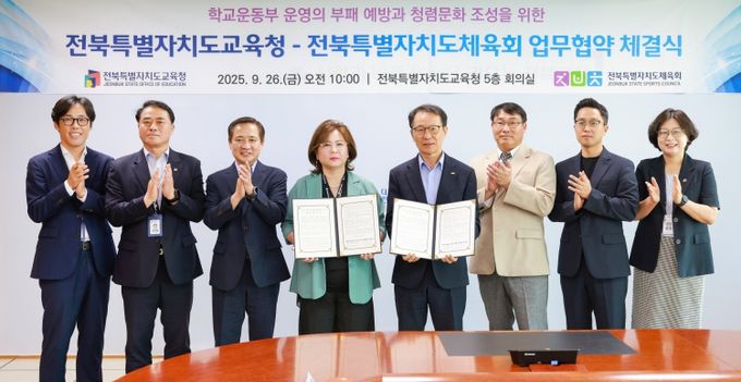 (포탈뉴스통신) 전북특별자치도교육청과 전북특별자치도체육회가 공정하고 투명한 학교 운동부 환경 조성을 위해 손을 맞잡았다.
