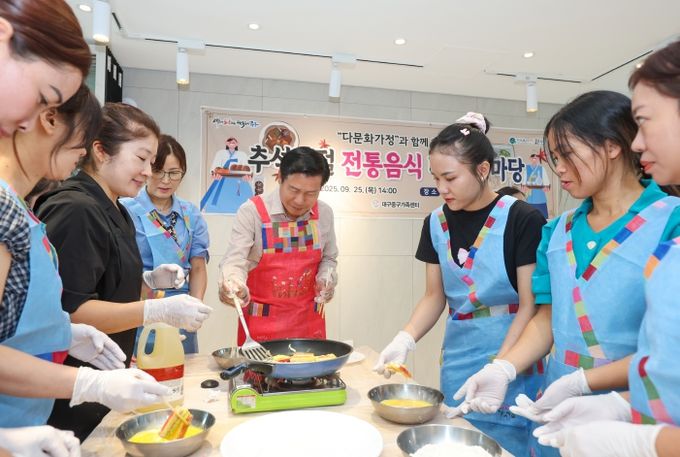 (포탈뉴스통신) 대구 중구청과 중구가족센터는 추석 명절을 맞아 지난 25일 중구생활문화센터에서 다문화가족 봉사단 15명과 함께 전통음식 만들기 및 나눔 행사를 진행했다.