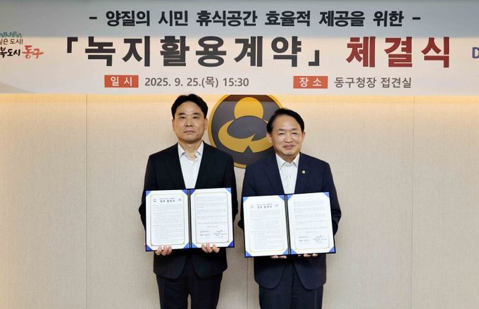 (포탈뉴스통신) 인천 동구는 지난 25일 동원로엑스㈜(인천㈜ 대표이사 최안석)와‘녹지활용계약’을 체결했다고 밝혔다. 인천 최초로 진행된 이번 계약은 민간기업이 소유한 사유지를 주민에게 열린 녹지로 제공하는 새로운 방식의 민관 협력 모델이다.