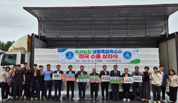 (포탈뉴스통신) 곡성군이 지난 25일 옥과농협 농산물유통센터(APC)에서 미국으로 수출하는 흑찰옥수수의 첫 상차식을 개최했다.