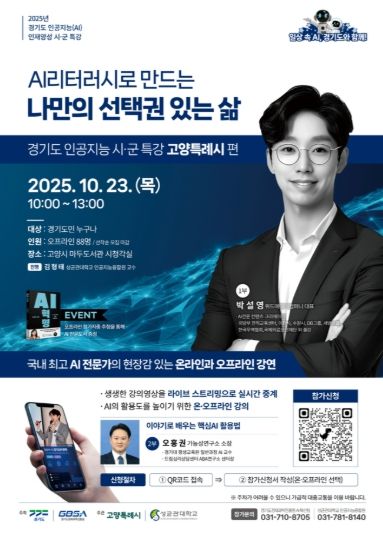 (포탈뉴스통신) 고양특례시는 경기도와 경기과학원이 주최하는 ‘2025년 인공지능 시군특강(고양특례시편)’을 10월 23일 마두도서관에서 진행한다고 밝혔다.