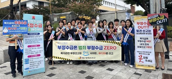 (포탈뉴스통신) 대구 서구는 지난 9월 24일 오후 서구청 청사 앞에서 복지급여 부정수급 제로화를 목표로‘부정수급 근절(OUT)!’ 캠페인을 했다고 밝혔다.