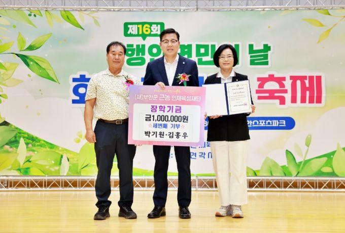 특히 박기원·김홍우 부부는 개인 정기기부를 통해 부안군 근농인재육성재단과 인연을 맺은 후, 2017년과 2021년 각 200만원 기부에 이어 올해 세 번째 장학금 기탁에 참여하며 총 570여만원에 이르는 장학금을 기부하여 지역 나눔문화 확산에 의미를 더했다.