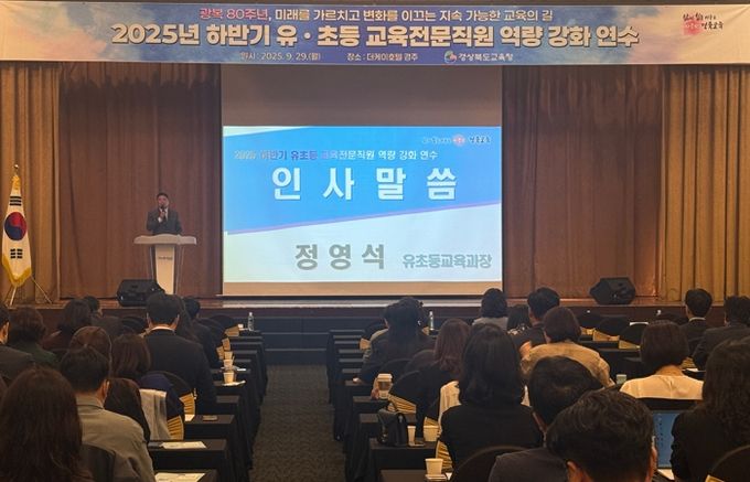 (포탈뉴스통신) 경북교육청은 29일 경주시에 있는 더케이호텔경주에서 본청과 직속기관․교육지원청 소속 유․초등 교육전문직원 160여 명이 참석한 가운데 ‘2025 하반기 유․초등 교육전문직원 역량 강화 연수’를 개최했다고 밝혔다.