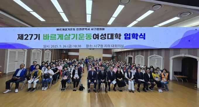 (포탈뉴스통신) 바르게살기운동 인천 서구협의회는 9월 27일 서구청 대회의실에서 ‘제27기 바르게살기운동 서구여성대학 입학식’을 개최했다.