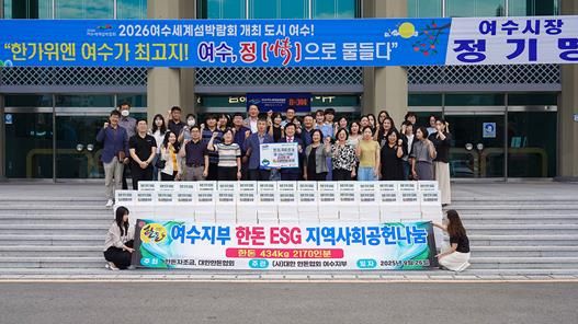 (포탈뉴스통신) 여수시는 (사)대한한돈협회 여수지부가 지난 26일 추석을 맞아 ESG 지역사회 공헌 활동의 일환으로 500만 원 상당의 한돈 434kg을 기탁했다고 밝혔다.