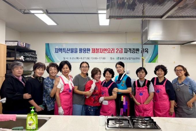 (포탈뉴스통신) 울릉군은 농촌 여성들의 경제적 자립과 사회 참여를 지원하기 위해 9월 25일부터 27일까지 3일간 울릉군 농입인회관 슬로푸드관에서 ‘지역 특산물을 활용한 제철자연요리 자격증반’을 운영했다.