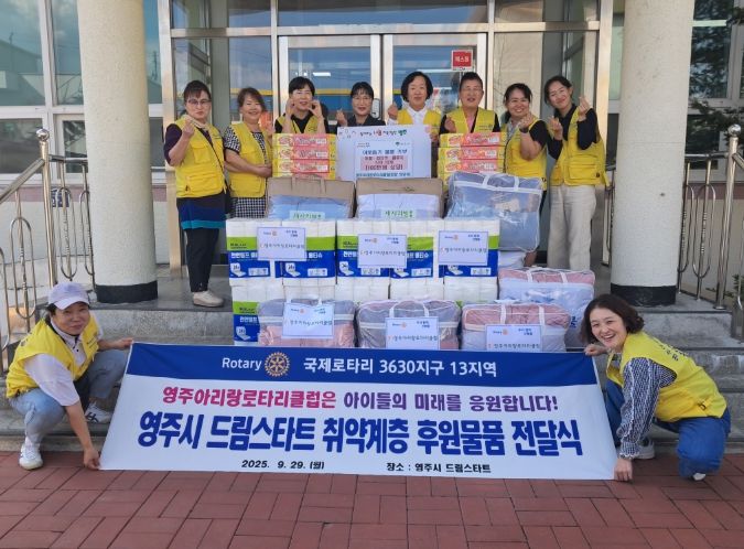 (포탈뉴스통신) 영주아리랑로타리클럽(회장 안외숙)이 추석을 맞이하여 29일 영주시드림스타트에 이불·화장지·컵라면등 100만 원 상당의 물품을 전달했다.