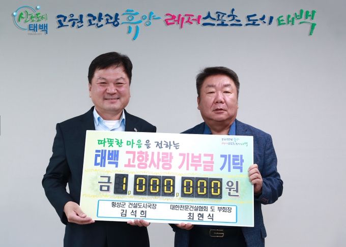 이번 기탁식에서 ▲대한전문건설협회 강원특별자치도회 오성진 회장 100만 원, ▲대한전문건설협회 강원특별자치도회 최현식 부회장 50만 원, ▲횡성군 건설도시국장 김석희 국장 50만 원 등 총 200만 원이 기부됐다.