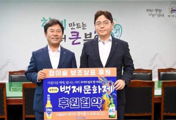 (포탈뉴스통신) 부여군은 지난 9월 26일 군수실에서 제71회 백제문화제 보조 상표 후원식을 열고, 국내 대표 주류기업인 하이트진로(주)와 함께 축제 성공을 위한 상생 협력의 자리를 가졌다.
