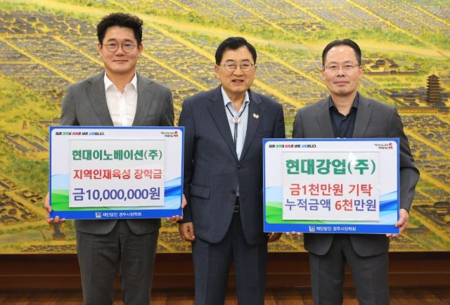 주낙영 경주시장(경주시장학회 이사장)은 “자라나는 학생들과 지역의 어려운 이웃을 위해 소중한 나눔을 실천해 준 현대강업과 현대이노베이션에 깊이 감사드린다”며 “기탁된 장학금은 가정 형편이 어려운 학생들을 위해 뜻깊게 사용하겠다”고 말했다.
