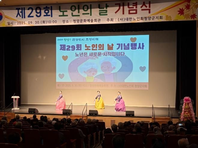 (포탈뉴스통신) 청양군은 30일 청양군 문화예술회관에서 10월 경로의 달을 맞아 대한노인회 청양군지회 주관으로 제29회 노인의 날 기념행사를 성대히 개최했다.
