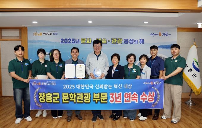 (포탈뉴스통신) 장흥군이 9월 29일 개최한 ‘2025 대한민국 신뢰받는 혁신대상’시상식에서 문학관광 부문 공공혁신 대상을 수상했다고 밝혔다.