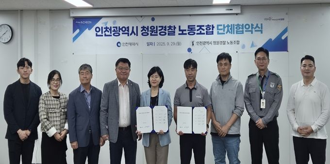 (포탈뉴스통신) 인천광역시는 지난 9월 29일 시청 소통회의실에서 인천광역시 청원경찰 노동조합과 역사적인 첫 단체협약을 체결했다고 밝혔다.