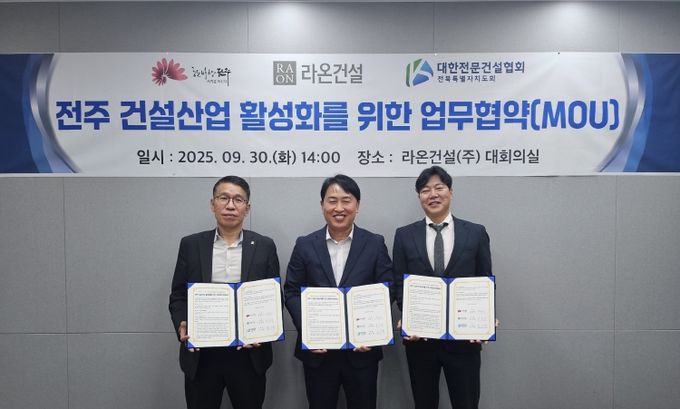특히 라온건설㈜는 전주지역 내 주택사업이 처음인 만큼 이날 협약을 바탕으로 지역건설산업 활성화에 적극 협조할 것을 약속하기도 했다.