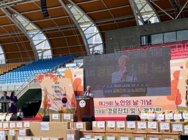 (포탈뉴스통신) 경산시는 10월 경로의 달을 맞아 27일 경산시민운동장에서 관내 어르신 7,000여 명을 모시고 제29회 노인의 날 기념행사 및 제18회 경로잔치를 개최했다.