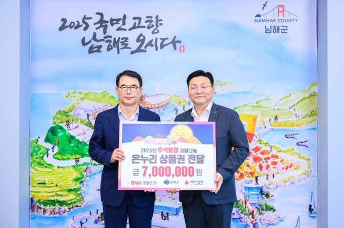 (포탈뉴스통신) 남해군은 지난 30일 BNK경남은행 남해지점이 추석 명절을 앞두고 700만원 상당의 온누리상품권을 기탁했다고 밝혔다.