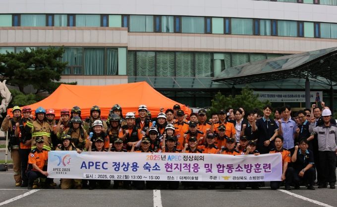(포탈뉴스통신) 경상북도 소방본부는 2025년 에이팩(APEC) 정상회의 기간중 소방대원들의 현장 적응력 등 대응역량 강화를 위해 9월부터 추진해 온 합동소방훈련 및 현지적응훈련을 10월 1일 경주화백컨벤션센터 훈련을 끝으로 모두 완료했다고 밝혔다.