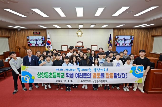 (포탈뉴스통신) 무안군의회는 10월 1일, 삼향동초등학교 5~6학년 학생 31명을 대상으로 의회 방문·견학 프로그램을 진행했다. 이번 견학은 미래 세대인 어린이들이 지방의회의 역할과 기능을 직접 체험하고, 민주주의의 가치를 배우는 교육의 장으로 마련됐다.