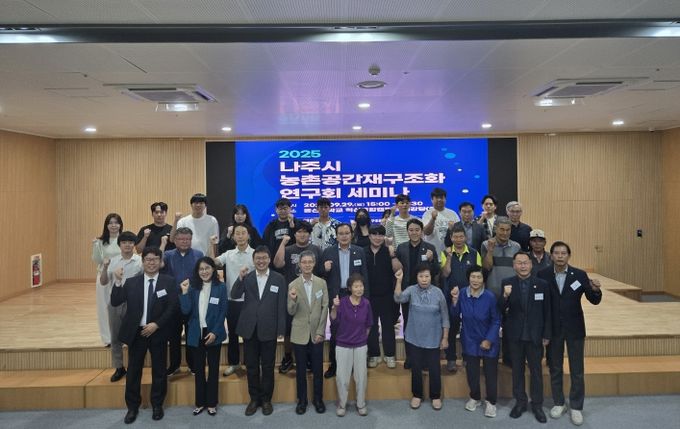 (포탈뉴스통신) 나주시의회 의원연구단체 ‘농촌공간 재구조화 과정 연구회’(대표의원 김강정)가 주최한 세미나가 지난 29일 빛가람동 동신대한방병원에서 읍면동 주민들과 유관기관 단체장, 언론인을 비롯한 관계자 등이 참석한 가운데 개최됐다.