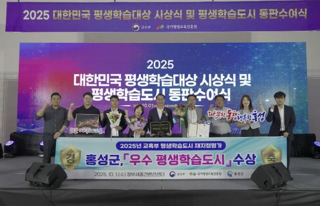 (포탈뉴스통신) 홍성군은 지난 1일 정부세종컨벤션센터에서 열린 ‘2025 대한민국 평생학습대상 및 평생학습도시 동판수여식’에서 교육부장관 기관표창을 수상하며, 전국 평생학습 활성화를 선도하는 도시로 위상을 높였다.