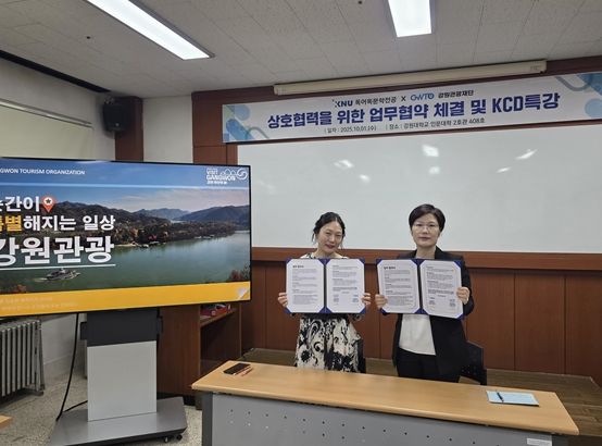 (포탈뉴스통신) 강원관광재단 글로벌마케팅실은 10월 1일 강원대학교 독어독문학전공과 글로벌 관광 전문 인재 양성을 위한 업무협약(MOU)을 체결했다.