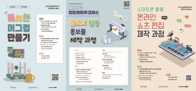 충남혁신센터 담당자는 “이번 교육과정을 통해 디지털 콘텐츠 제작과 창의적 아이템 제작 능력을 높이고, 이를 실제 마케팅과 제품개발에 효과적으로 활용할 수 있기를 기대한다.”고 밝혔다.