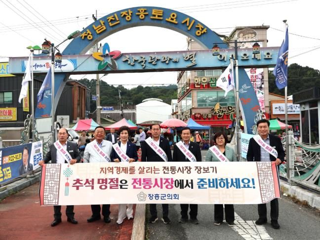 (포탈뉴스통신) 장흥군의회는 10월 2일, 지역 대표 전통시장인 정남진 토요시장에서 ‘추석 맞이 장보기 행사’를 열었다.