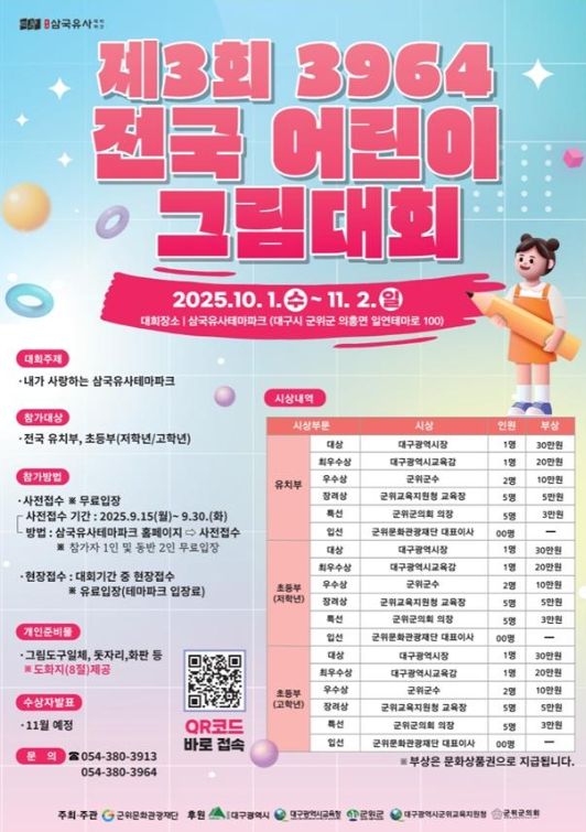 또한, 대회 기간 중 11월 1~2일에는 '2025 군위 바베큐 축제'도 함께 열려, 참가 가족들이 그림대회와 축제를 동시에 즐길 수 있다.