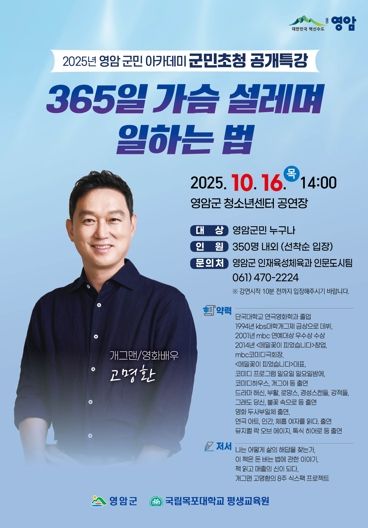 이번 영암군민아카데미에서는 ‘365일 가슴 설레며 일하는 법’을 주제로 누구나 일상에서 열정을 유지하고 스스로 동기를 부여하는 방법을 나눌 예정이다.