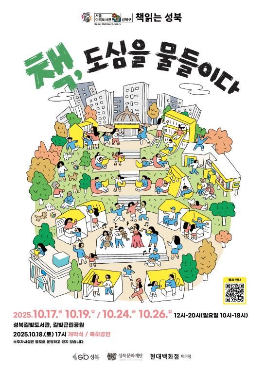 (포탈뉴스통신) 서울 성북구와 성북문화재단이 오는 10월 17일부터 26일까지 매주 금·토·일요일, 성북길빛도서관과 길빛근린공원 일대에서 『서울야외도서관 책 읽는 성북 – 책, 도심을 물들이다』를 운영한다.