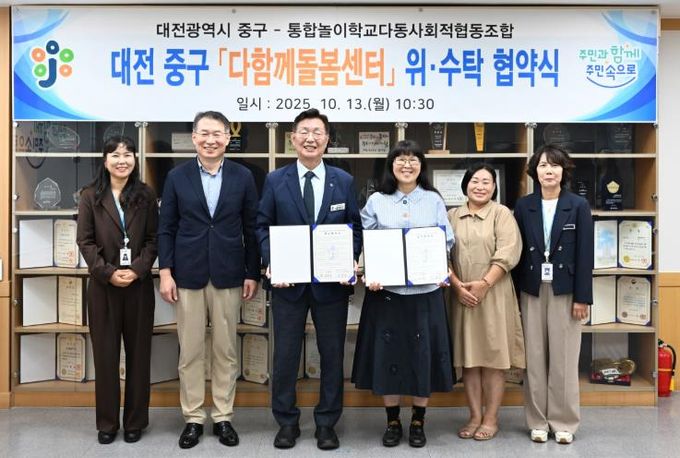 (포탈뉴스통신) 대전 중구는 13일 통합놀이학교다동 사회적협동조합(대표 이미라)과 다함께돌봄센터 석교1호점 위수탁 운영협약을 체결했다고 밝혔다.