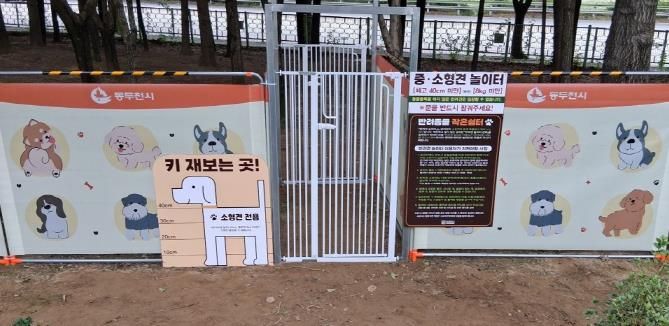(포탈뉴스통신) 동두천시는 반려견과 시민이 함께 어울릴 수 있는 반려동물 문화공간을 조성하기 위해 강변로 156(강변근린공원 내)에 반려견 간이놀이터(이동식 울타리)를 설치하고 시범운영에 들어갔다고 밝혔다.