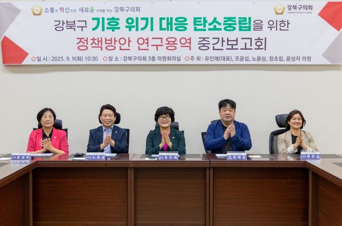 (포탈뉴스통신) 강북구의회 의원연구단체인 ‘강북구 기후위기 대응 탄소중립을 위한 연구회’ (대표의원 유인애)는 지난 9월 9일 의회 3층 의원회의실에서 중간보고회를 열었다.